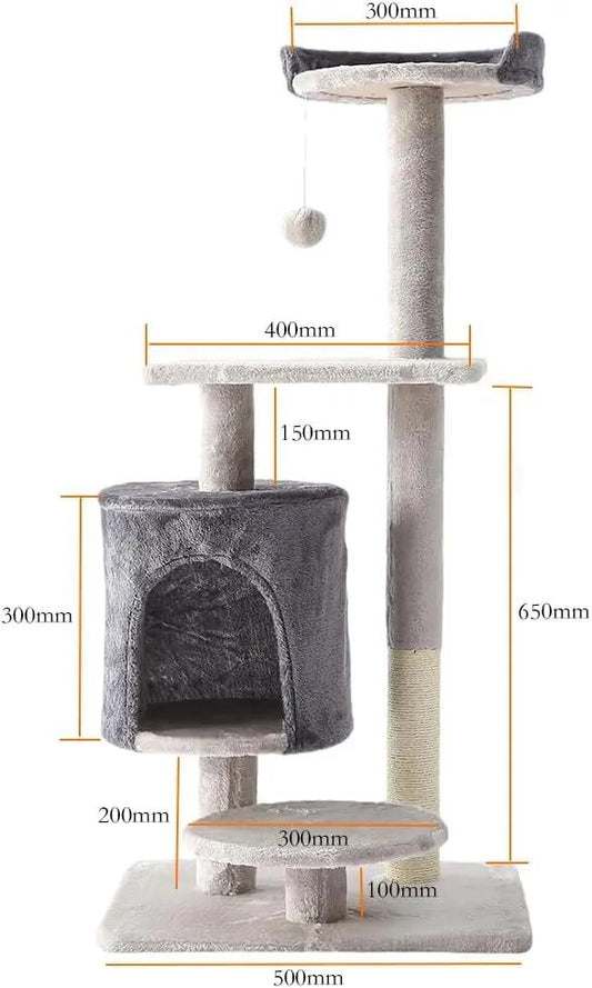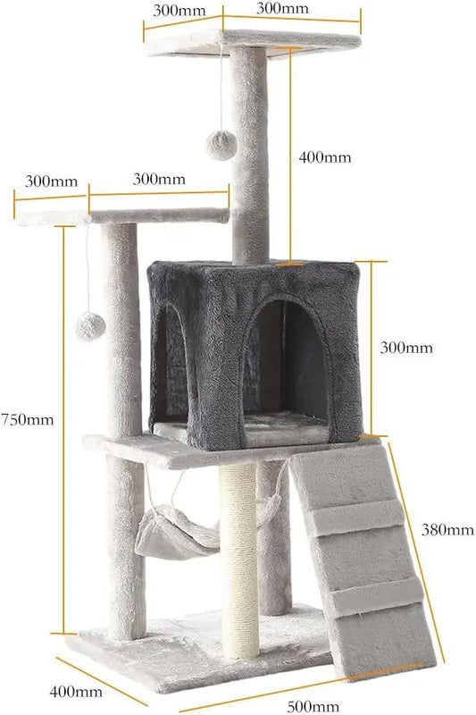 Cat Tower, Indoor Cat Tree with Sisal Covered Catch Posts and Plush Catch Balls, Suitable for Small and Medium-sized Cats(GRAY, 50 * 40 * 110 With hammock)