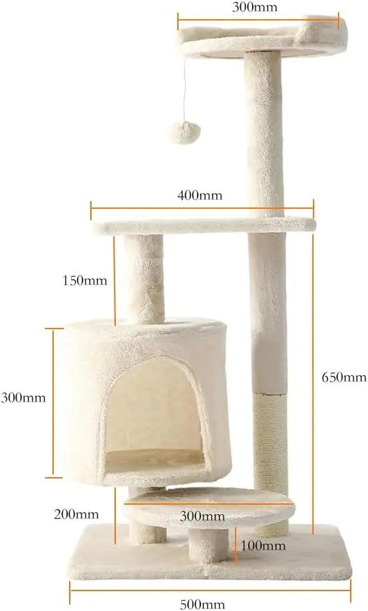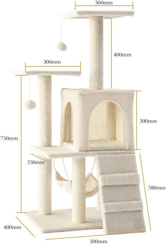 Cat Tower, Indoor Cat Tree with Sisal Covered Catch Posts and Plush Catch Balls, Suitable for Small and Medium-sized Cats(beige, 50 * 40 * 110 With hammock)