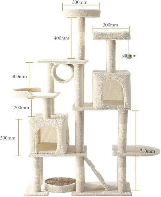 LARGE Cat Tree, Cat Tower With Sisal Covered Catch Posts and Plush Catch Balls, Suitable for Small and Medium-sized Cats(beige, 90 * 40 * 165)