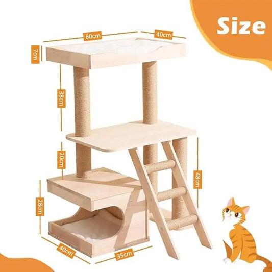 Cat Tree Wooden for Indoor Cats,Tall Cat Furniture with Natural Sisal Rope Scratching Post, Modern Wooden Cat Tower with Cave, Mat,Stable Pet Playhouse Furniture (3 layers)