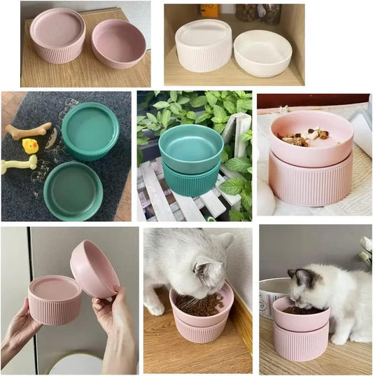 Ceramic Cat Bowl, Tall To Protect The Cervical Spine Anti-Spill Pet Bowls, Detachable Ceramic Water Bowl Food Bowl