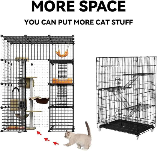 Cat Cage Indoor, Detachable Metal DIY Pet Playpen, Portable Collapsible Pet Cat Cage Enclosure for Small and Medium Pets (146 * 111 * 111cm, black)