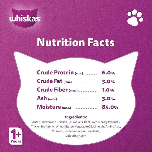 Whiskas Chicken in Gravy Wet Cat Food Pouch, 80g, Wet Food for 1+ Years Adult Cats, Complete and Balanced Nutrition