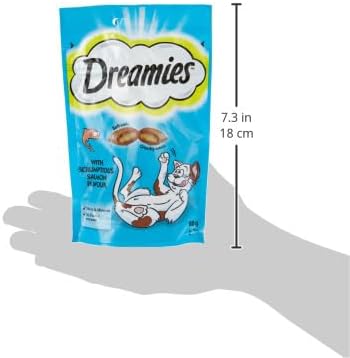 مكافآت القطط دريميز مع سمك السلمون اللذيذ، 60 جرام، مقرمشة من الخارج، طرية من الداخل، مكافأة القطط سمك السلمون