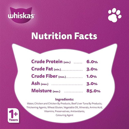 كيس طعام القطط الرطب من ويسكاس، دجاج في مرق، 80 جرام، طعام رطب للقطط البالغة من عمر سنة فما فوق، تغذية كاملة ومتوازنة