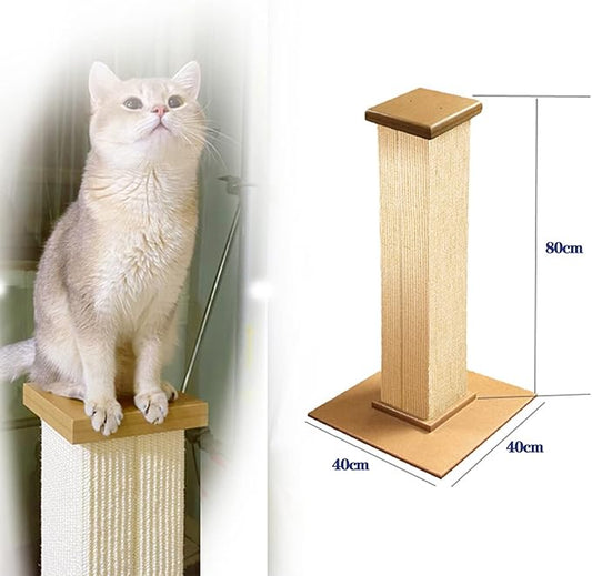 عمود خدش القطط المثالي، 80 سم ارتفاع خدش القطط للقطط الداخلية، عمود خدش القطط مكعب الشكل من نبات السيزال (بني)