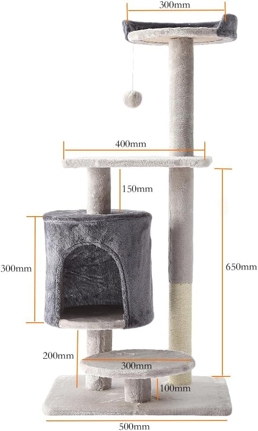 شجرة القطط، برج القطط مع أعمدة التقاط مغطاة بالسيزال وكرات التقاط مخملية، مناسبة للقطط الصغيرة والمتوسطة الحجم (رمادي، 50 * 40 * 110 (بدون أرجوحة))