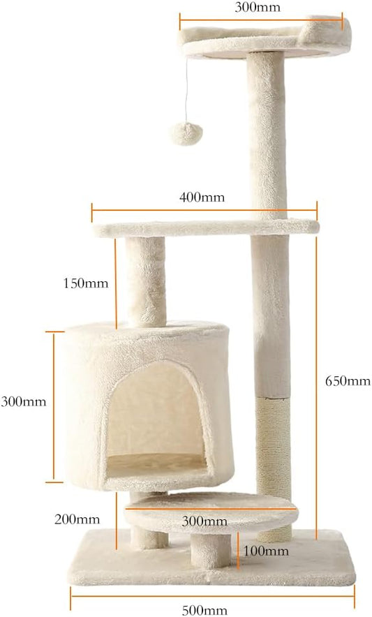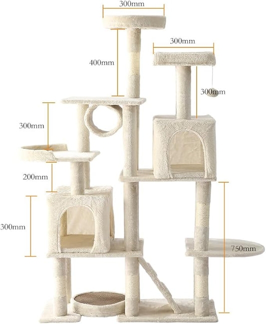 شجرة قطط كبيرة، برج قطط مع أعمدة التقاط مغطاة بالسيزال وكرات التقاط مخملية، مناسبة للقطط الصغيرة والمتوسطة الحجم (بيج، 90 * 40 * 165)