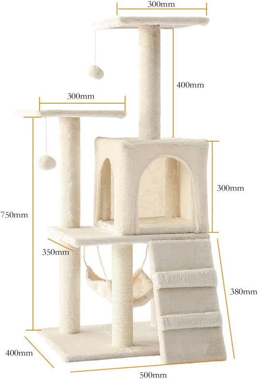 برج القطط، شجرة قطط داخلية مع أعمدة التقاط مغطاة بالسيزال وكرات التقاط مخملية، مناسبة للقطط الصغيرة والمتوسطة الحجم (بيج، 50 * 40 * 110 مع أرجوحة)