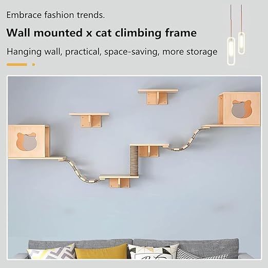 8 قطع من رفوف الحائط للقطط، مجموعة تسلق الحائط للقطط