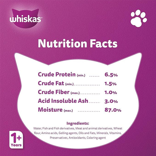 طعام القطط الرطب من ويسكاس بنكهة سمك المحيط في الجيلي، عبوة من قطعة واحدة 80 جرام، طعام رطب للقطط البالغة بعمر سنة فأكثر، تغذية كاملة ومتوازنة