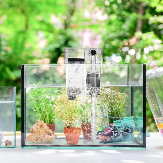 فلتر حوض سمك صغير، فلتر حوض سمك خارجي معلق، ترشيح صامت من القطن الحيوي وتدفق مياه قابل للتعديل لأحواض السمك الصغيرة وخزانات الأسماك