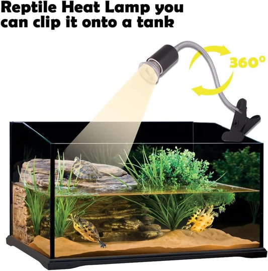 مصباح حراري للزواحف، مصباح إضاءة UVA/UVB قابل للتعديل بزاوية 360 درجة، مصباح حراري للسلحفاة بقوة 50 وات (مصباح حراري للزواحف (بدون لمبة))