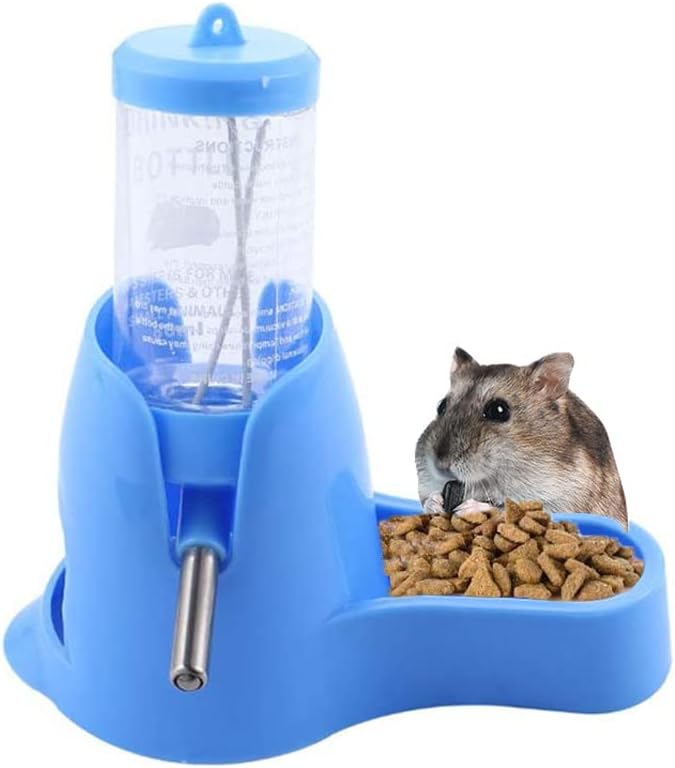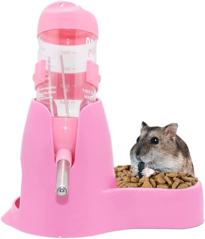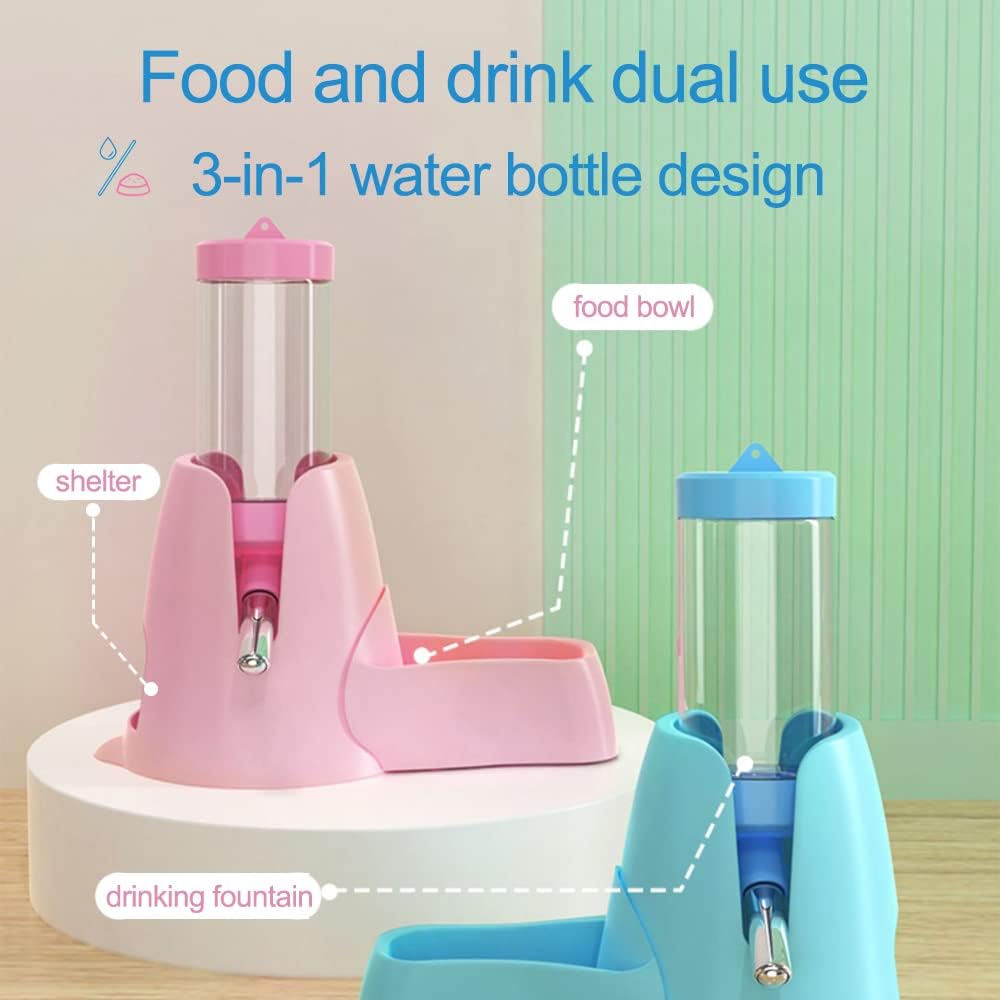 زجاجة مياه معلقة 3 في 1 للهامستر، زجاجة شرب أوتوماتيكية للحيوانات الأليفة الصغيرة مع حاوية طعام، كرة معلقة لمنع تسرب المياه، للهامستر والفئران وخنازير غينيا والأرانب