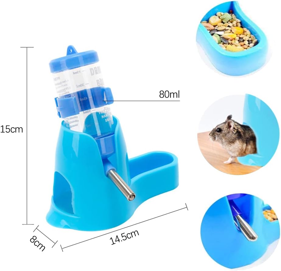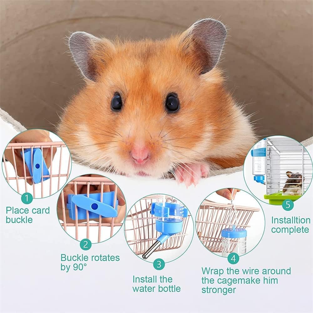 - 🐹【متعددة الوظائف】زجاجة الماء المعلقة 3 في 1 للهامستر يمكن استخدامها كغلاية مياه لحيوانك الأليف الصغير. يمكن وضعها على الرف للاستخدام المباشر، أو تعليقها على القفص. كما يمكن استخدامها كحوض طعام بجوار الرف.
