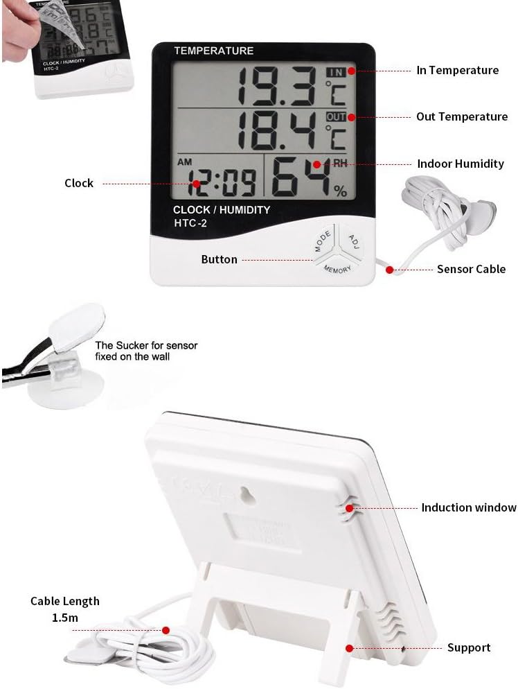 جهاز قياس درجة الحرارة والرطوبة الرقمي للحيوانات الأليفة في الأماكن المغلقة والمفتوحة HTC-2