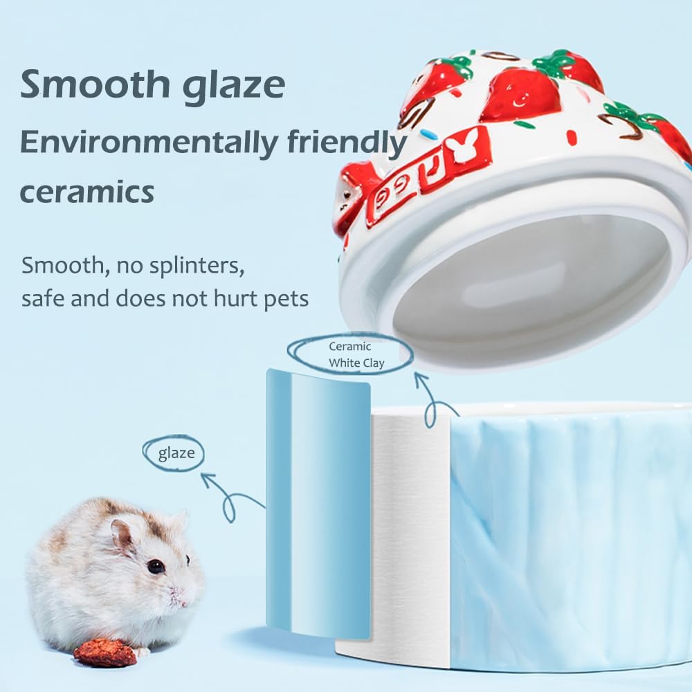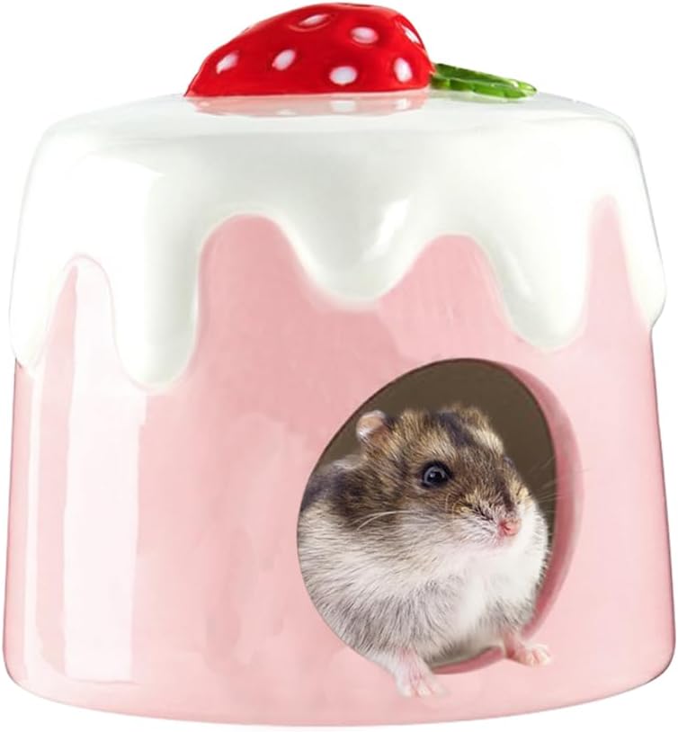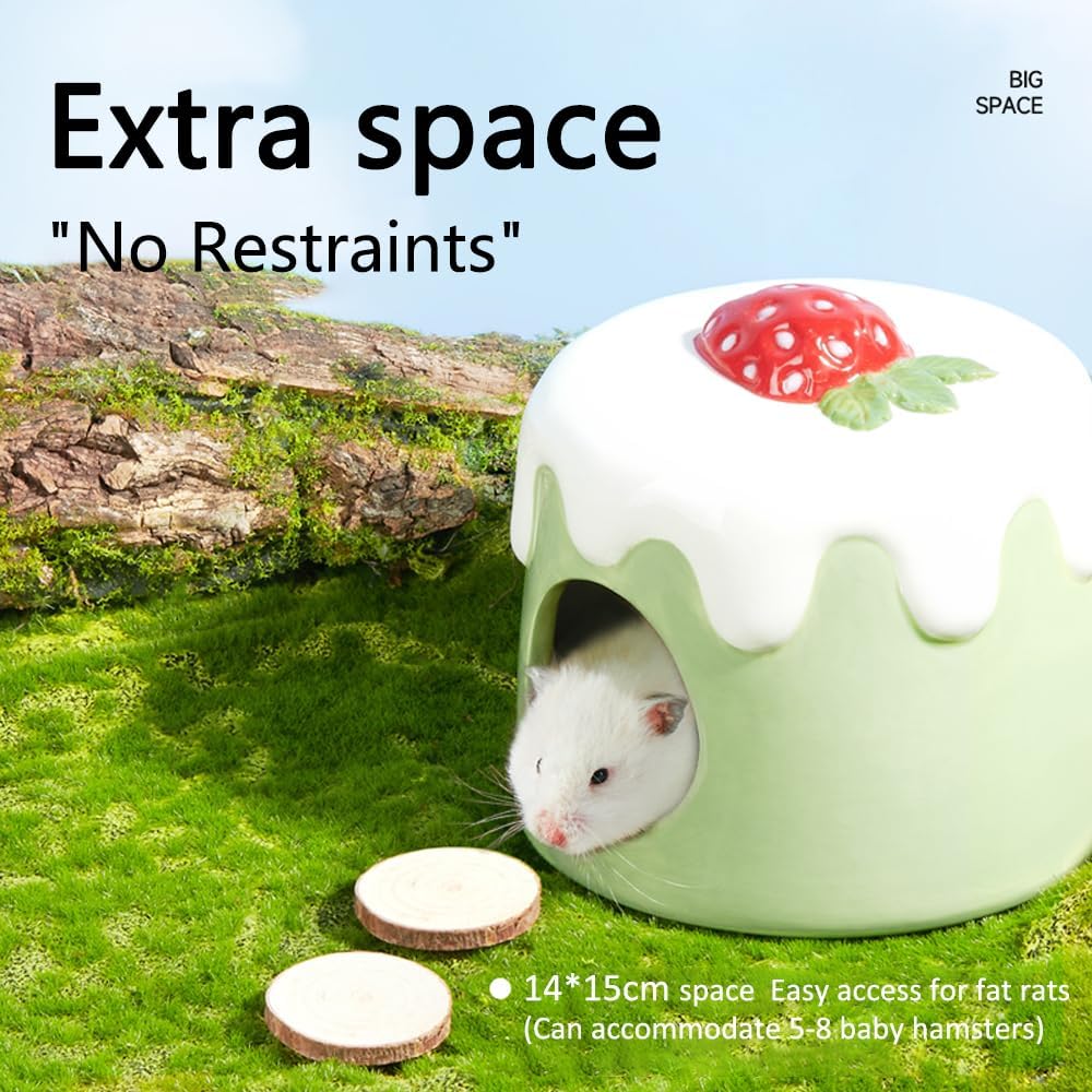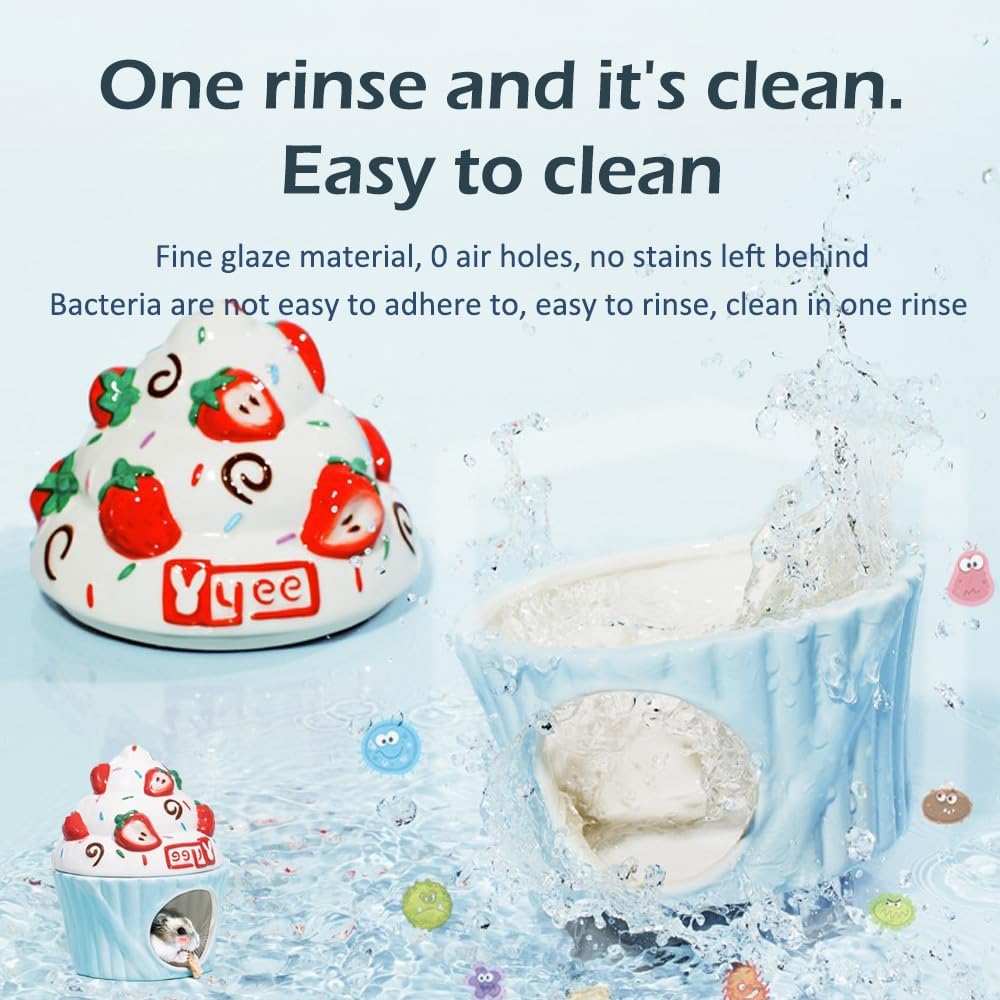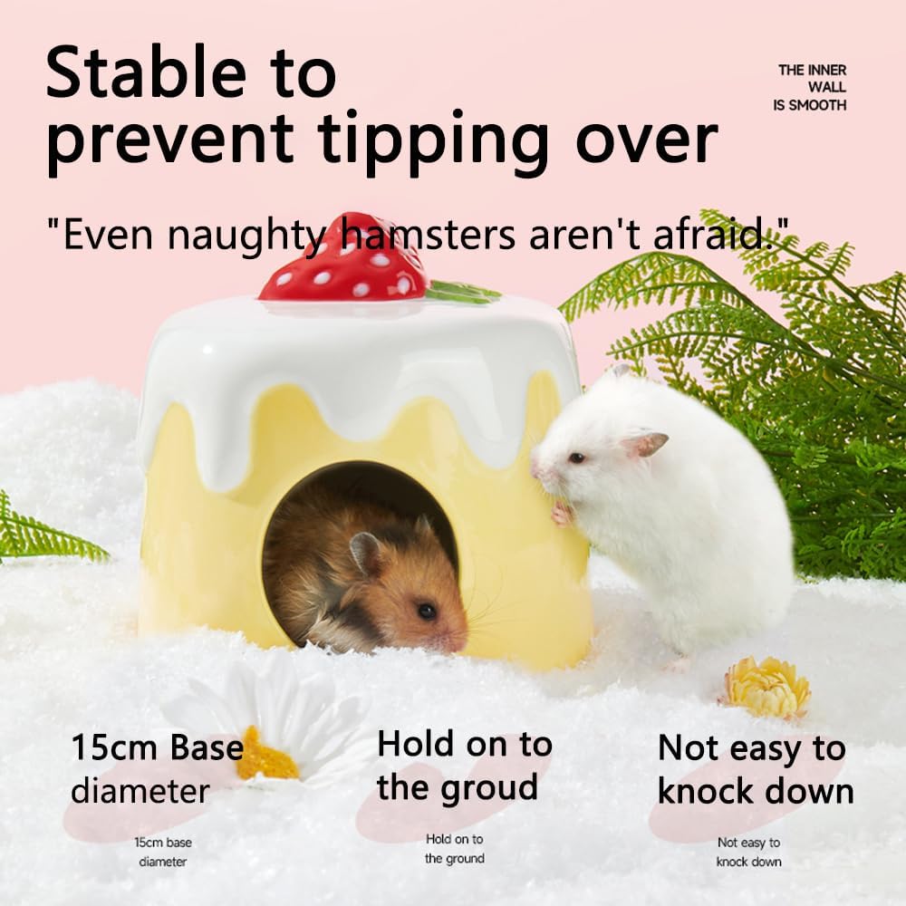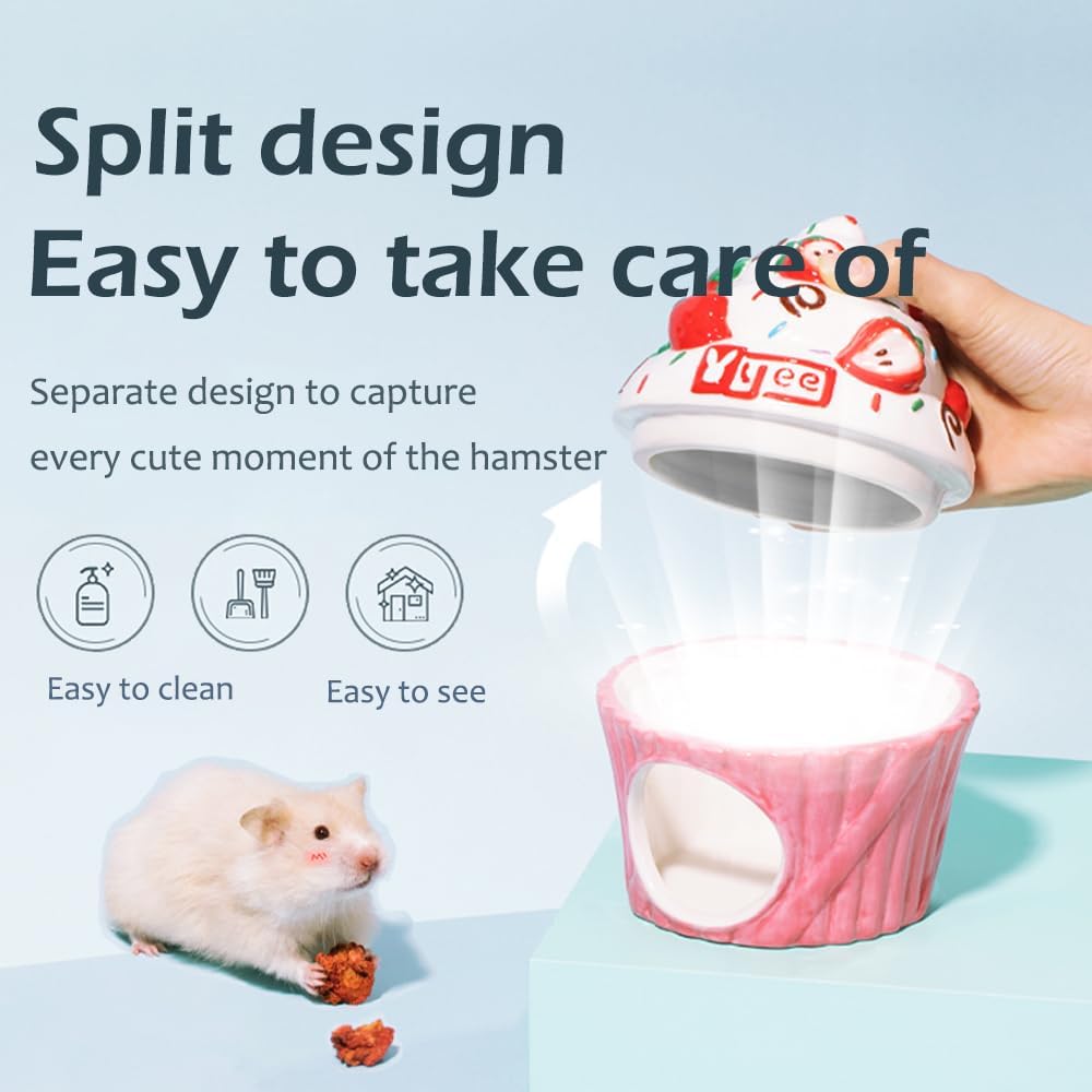- 🧁【مادة سيراميك】مصنوعة من مادة سيراميك عالية الجودة ومتينة ومقاومة للمضغ، سهلة التنظيف ومقاومة للروائح. بيت الهامستر أملس ونظيف تمامًا، مما يوفر مساحة آمنة ومريحة لحيوانك الأليف الصغير للراحة واللعب.