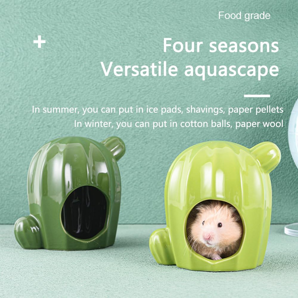 - 🌵【مأوى صيفي للحيوانات】 تُساعد البيوت الخزفية على تبريد الجو. في الصيف الحار، نوفر عشًا باردًا للحيوانات الصغيرة للعب والراحة. مثالي للهامستر والجربوع والشنشيلة وغيرها من الحيوانات الصغيرة.
