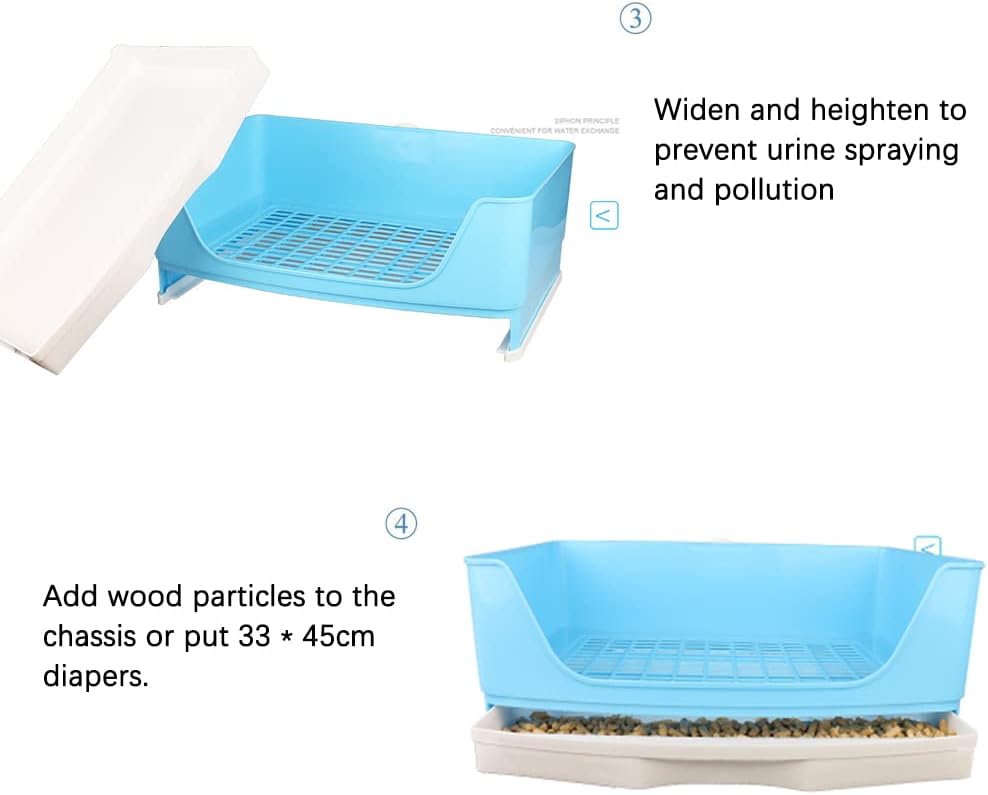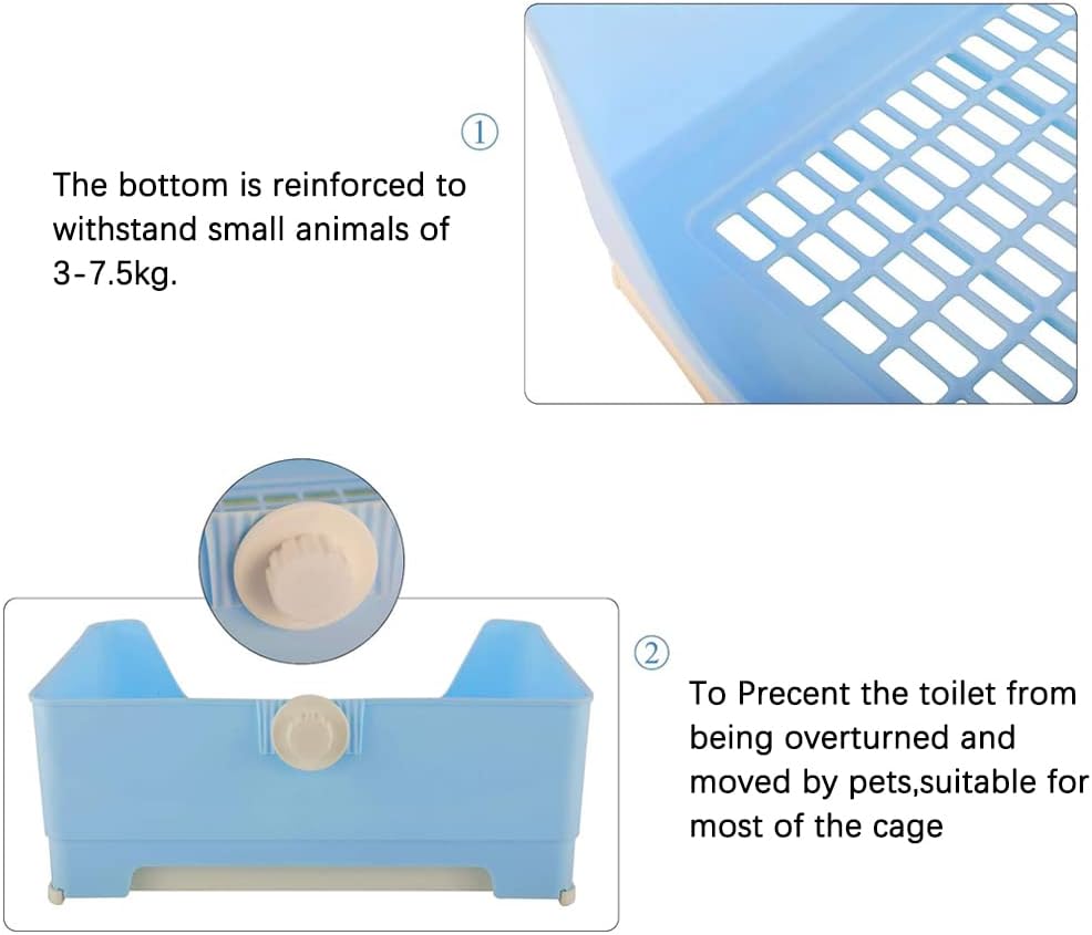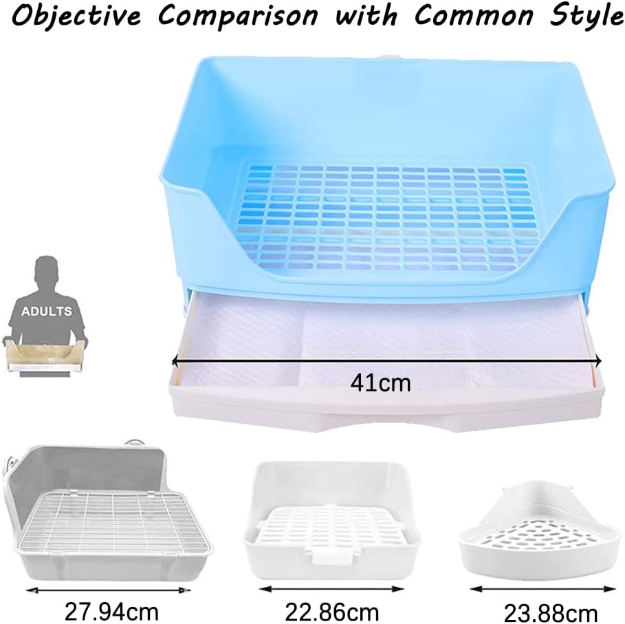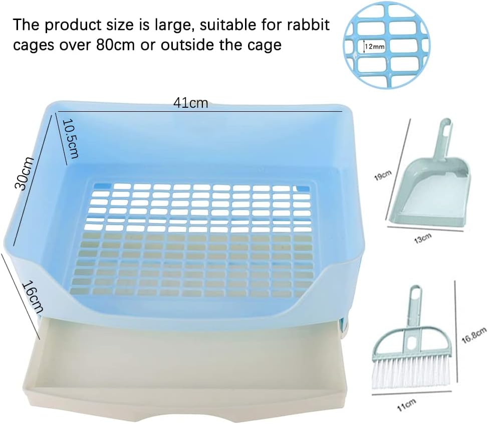 صندوق قمامة كبير للأرانب، مرحاض زاوية مع أدراج، مجموعة تنظيف للأرانب، خنازير غينيا البالغة، الجولدن، النمس والحيوانات الأليفة الصغيرة الأخرى (أزرق (41 * 30 * 16)