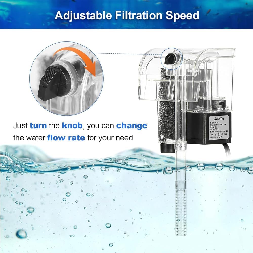 فلتر حوض سمك صغير، فلتر حوض سمك خارجي معلق، ترشيح صامت من القطن الحيوي وتدفق مياه قابل للتعديل لأحواض السمك الصغيرة وخزانات الأسماك