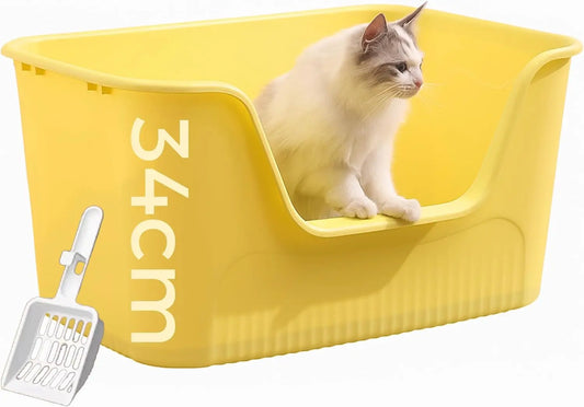 Stainless Steel Cat Litter Box 35L Large Capacity with Litter Scoop, Odor Control & Rust-Proof, Non-Stick Bottom & Easy to Clean