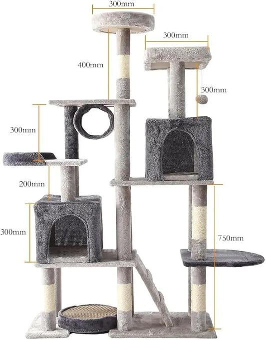 LARGE Cat Tower, Indoor Cat Tree with Sisal Covered Catch Posts and Plush Catch Balls, Suitable for Small and Medium-sized Cats(grey, 90 * 40 * 165)