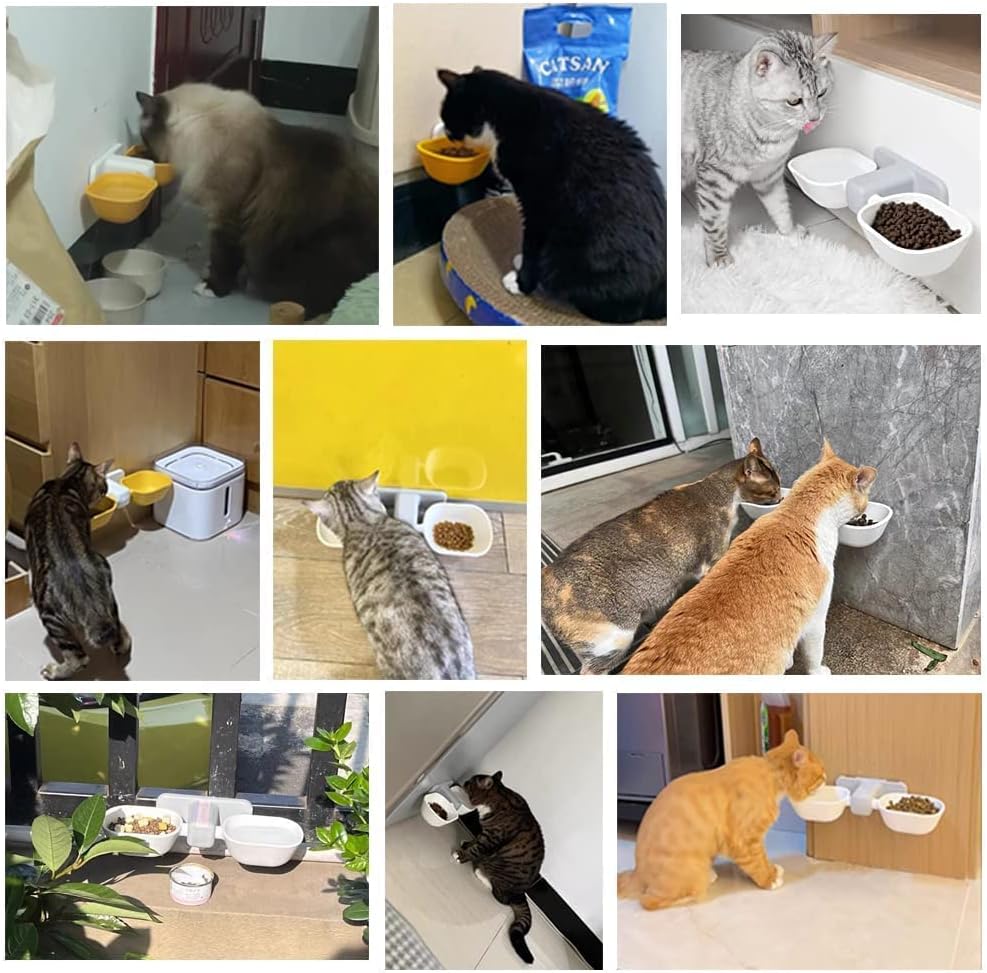 - 😻【Reduce Neck Burden & Less Vomiting】Ordinary cat food bowls are too low to solve your cat’s vomiting problem?Our wall-mounted cat bowls for kitten to adult cats can solve this problem. There are three protective film that allow you to test different heights to see which height is the perfect fit for your cat. Your cat deserves better.