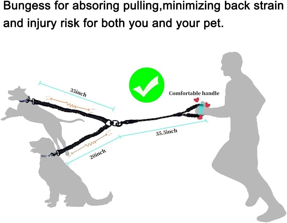 - 🐕【Shock Absorbing Bungee Extension】: The unique bungee design helps absorb the shock of fast movements when used with energetic and active dogs, reducing the feeling of being pulled. The dog leash has a strong pull, giving your dog plenty of room to run in front of or beside you.